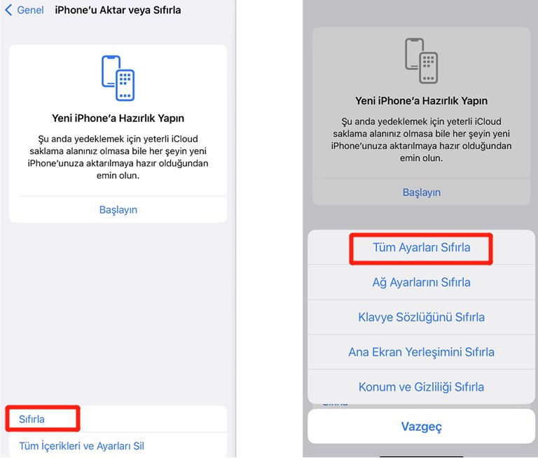 Tüm iPhone ayarlarını sıfırlamak için adımlar: